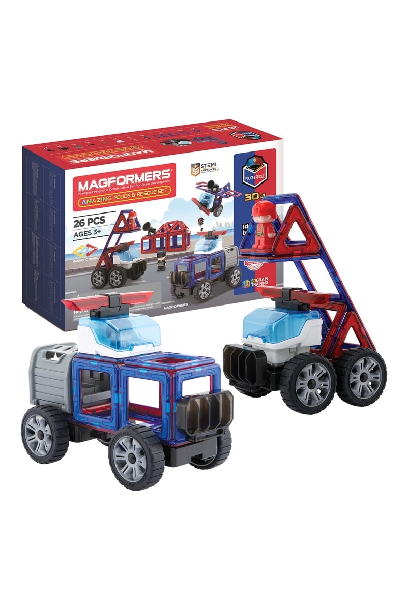 Kit de construction magnétique Amazing Police & Rescue - 26 pièces - Dès 3 ans - Magformers