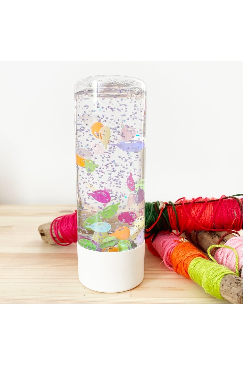 S’utilise en la secouant pour observer le déplacement des motifs colorés à l’intérieur.