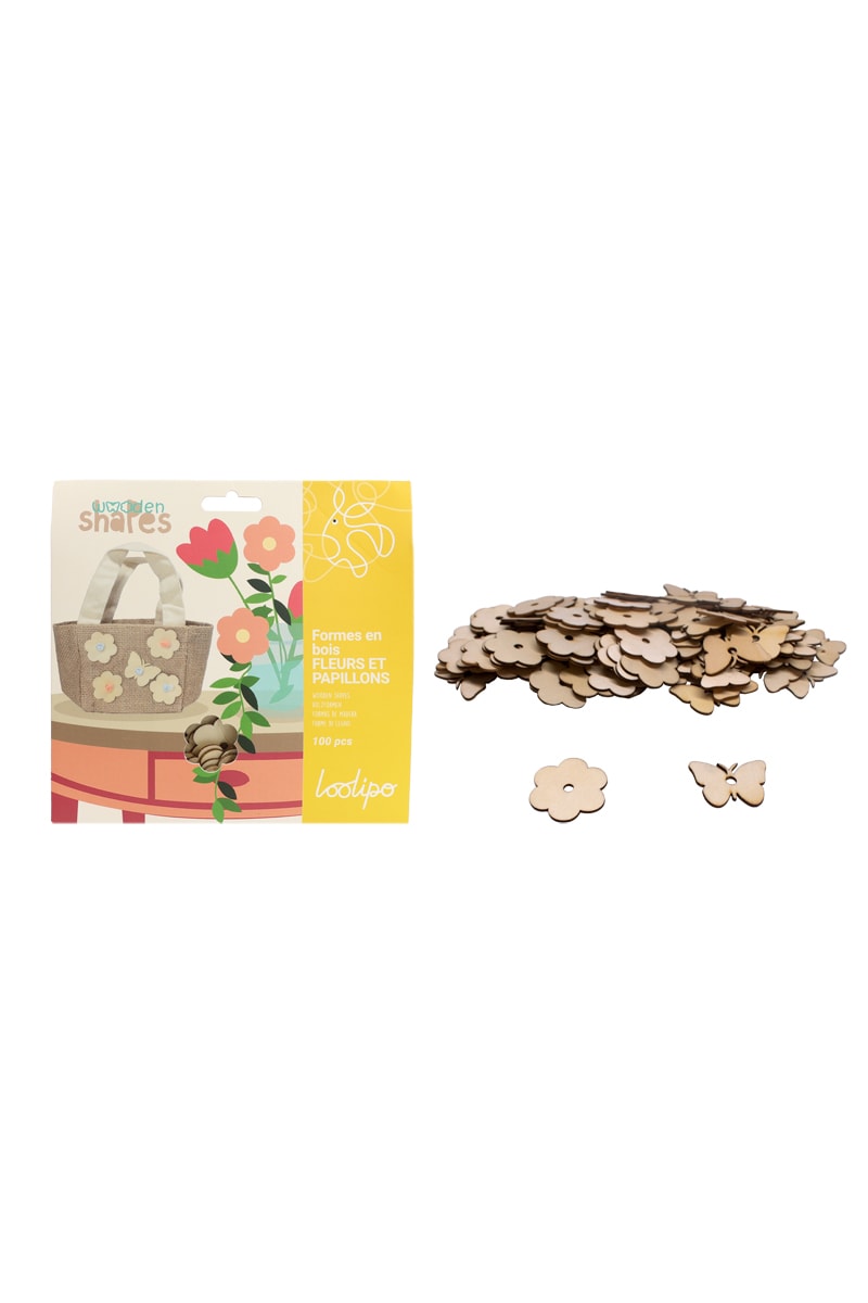 Formes fleurs et papillons en bois - 100 pièces