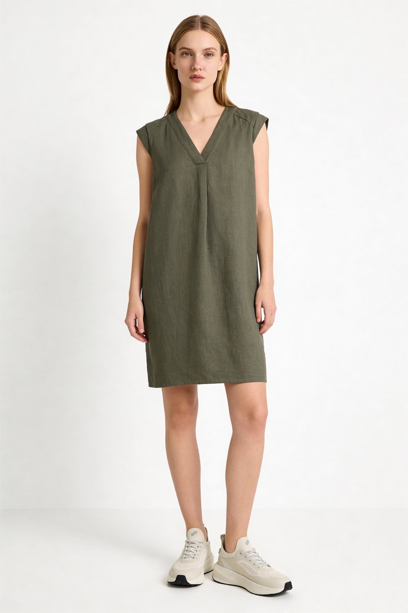 Robe droite en lin Pamela - Kaki