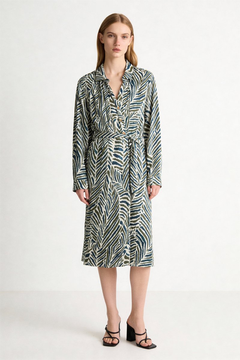 Robe chemise Rumilia - Ecru et bleu pétrole