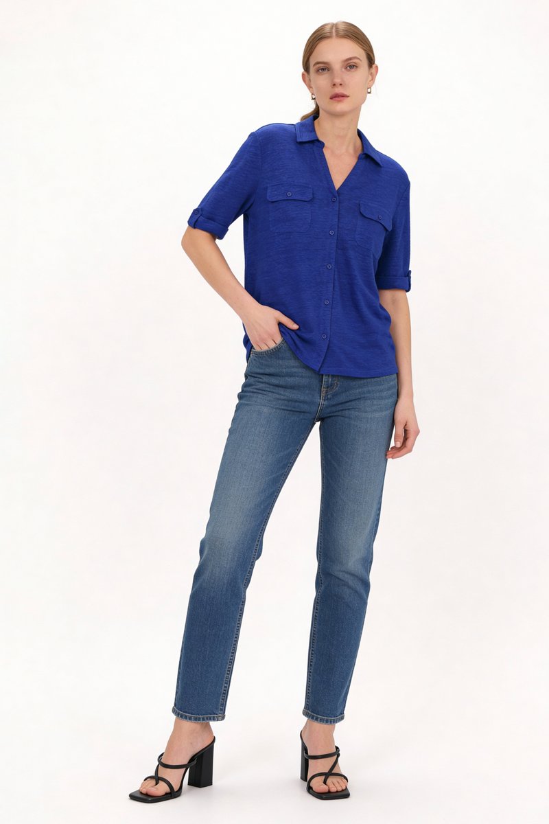 Chemisier en lin Estela - Bleu roi