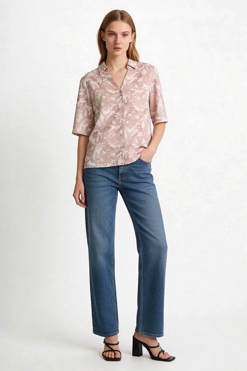 Chemisier droit en lin mélangé.