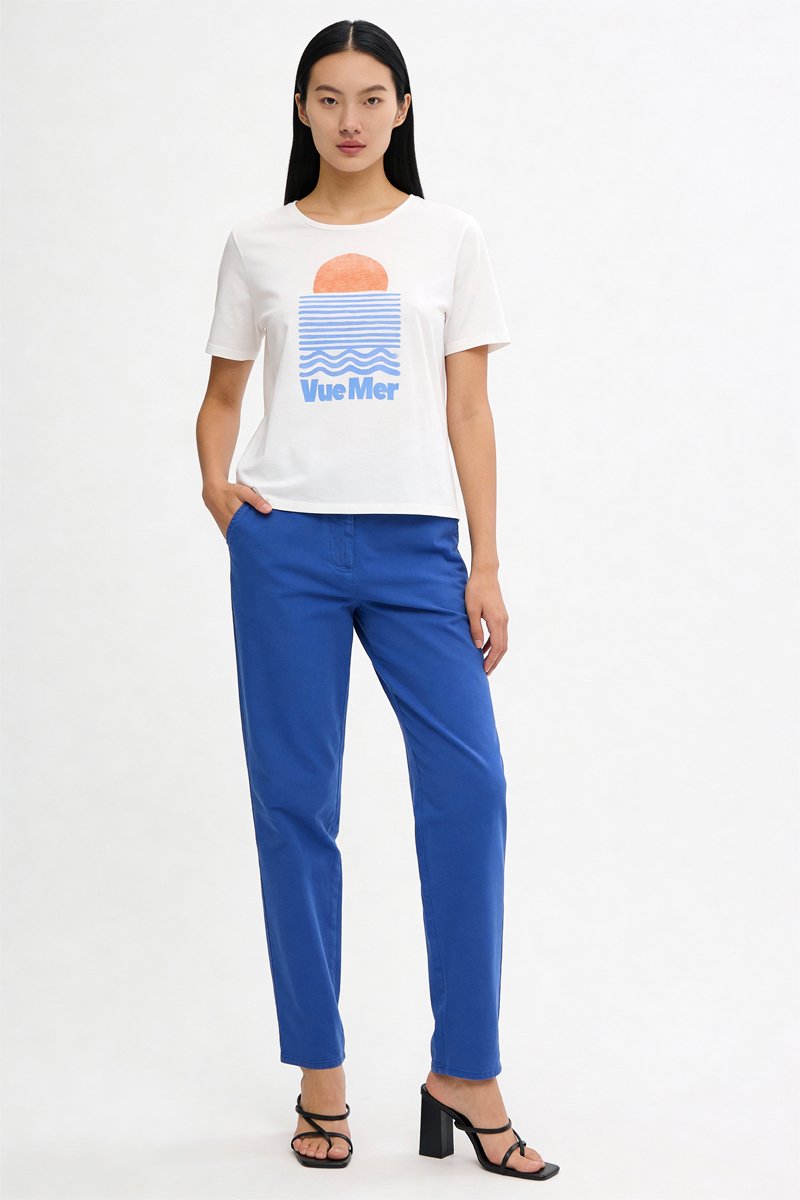 Coloris : écru, orange et bleu clair