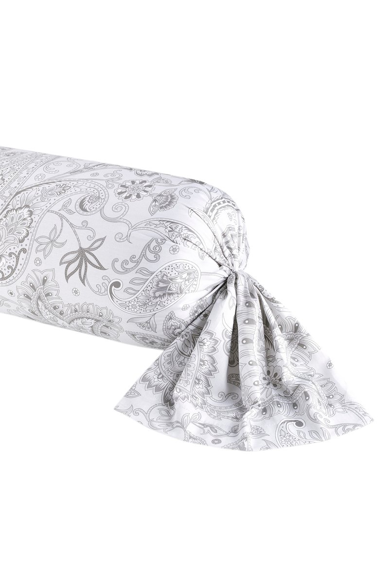 Taie de traversin en satin de coton 80 fils/cm² Indienne - Gris clair et blanc