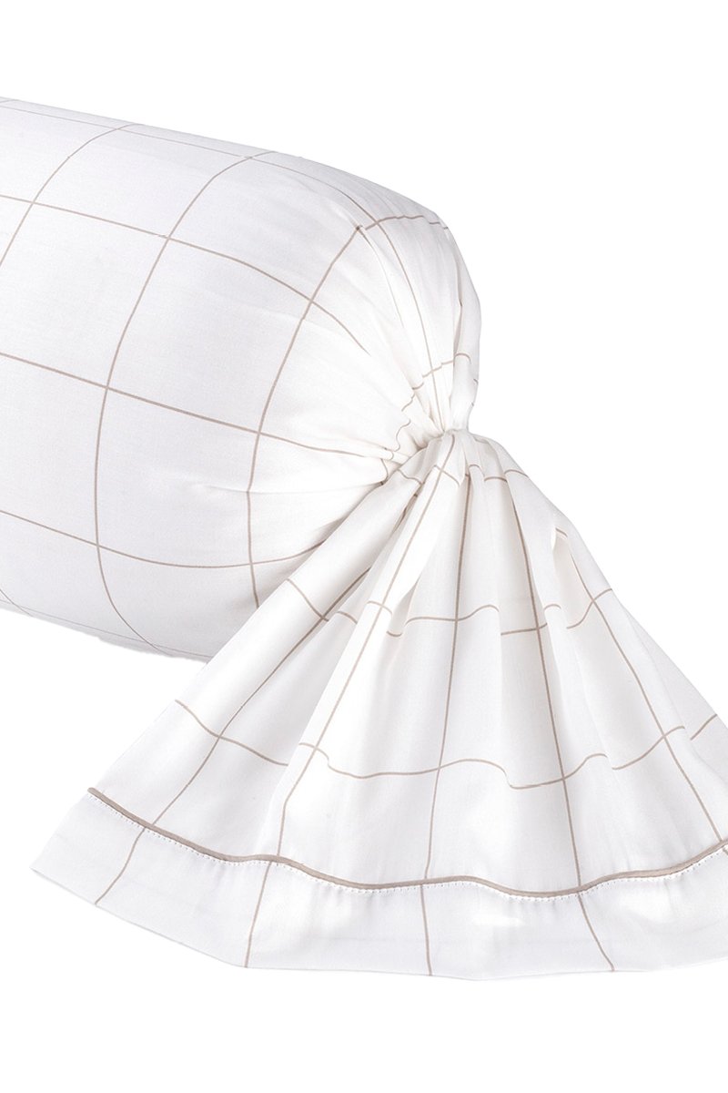 Taie de traversin en satin de coton 80 fils/cm² Carreaux - Blanc et taupe