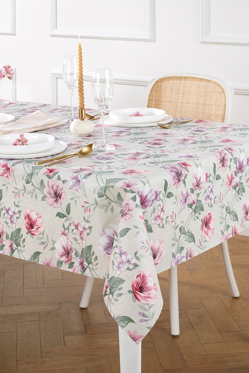 Nappe enduite anti-tâche Eclosion de fleurs - Gris