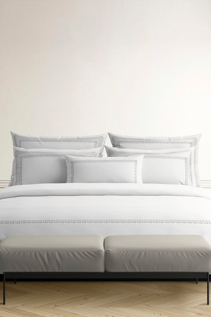 Parure de couette en satin de coton 80 fils/cm² Grand Hôtel - Blanc et gris