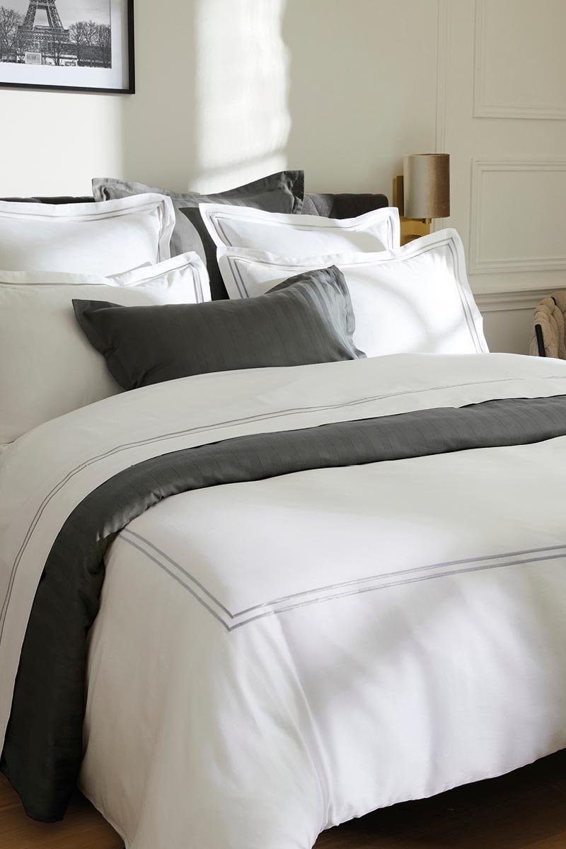 Parure de couette en satin de coton 80 fils/cm² Paris - Blanc et argenté