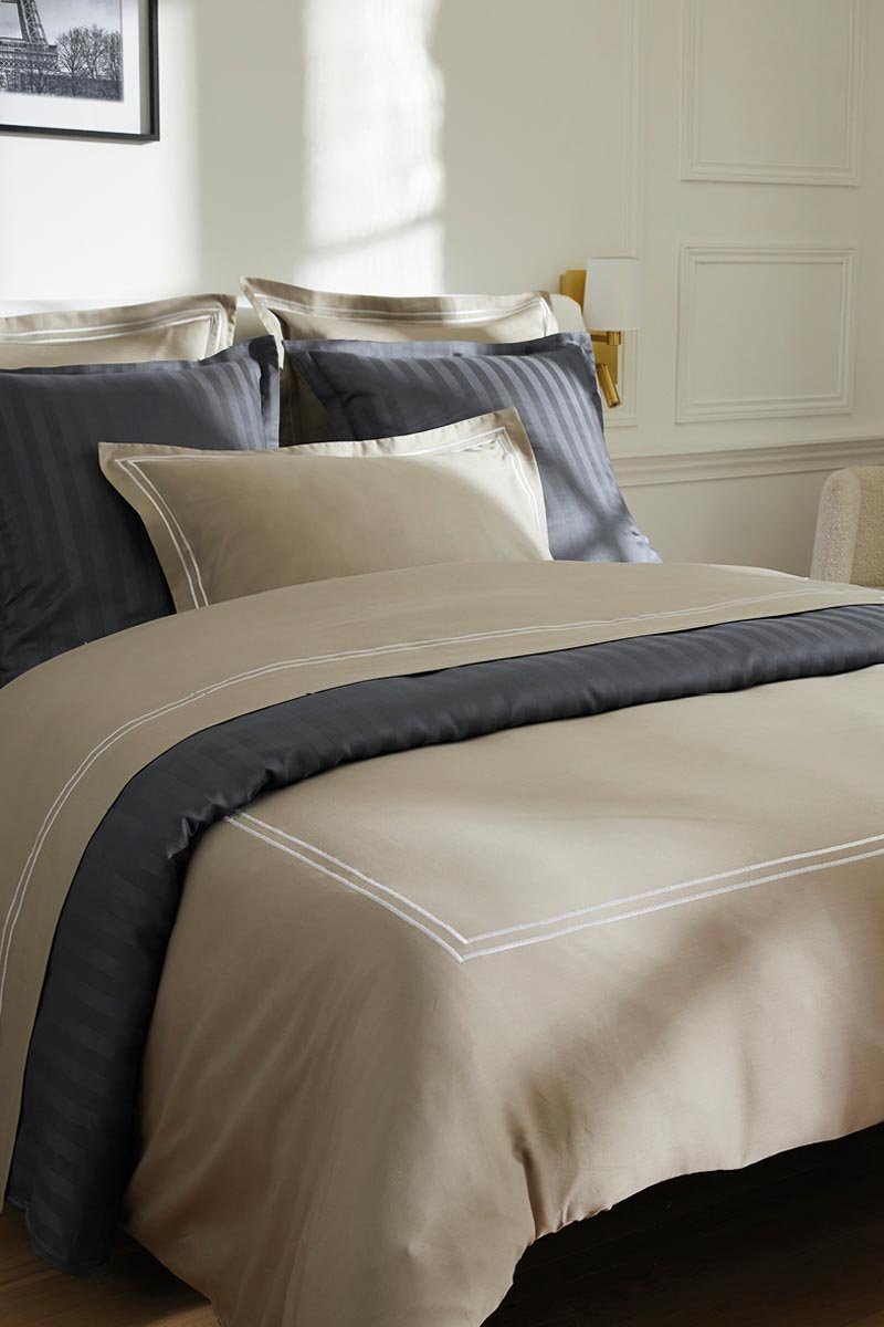 Parure de couette en satin de coton 80 fils/cm² Paris - Taupe / Blanc