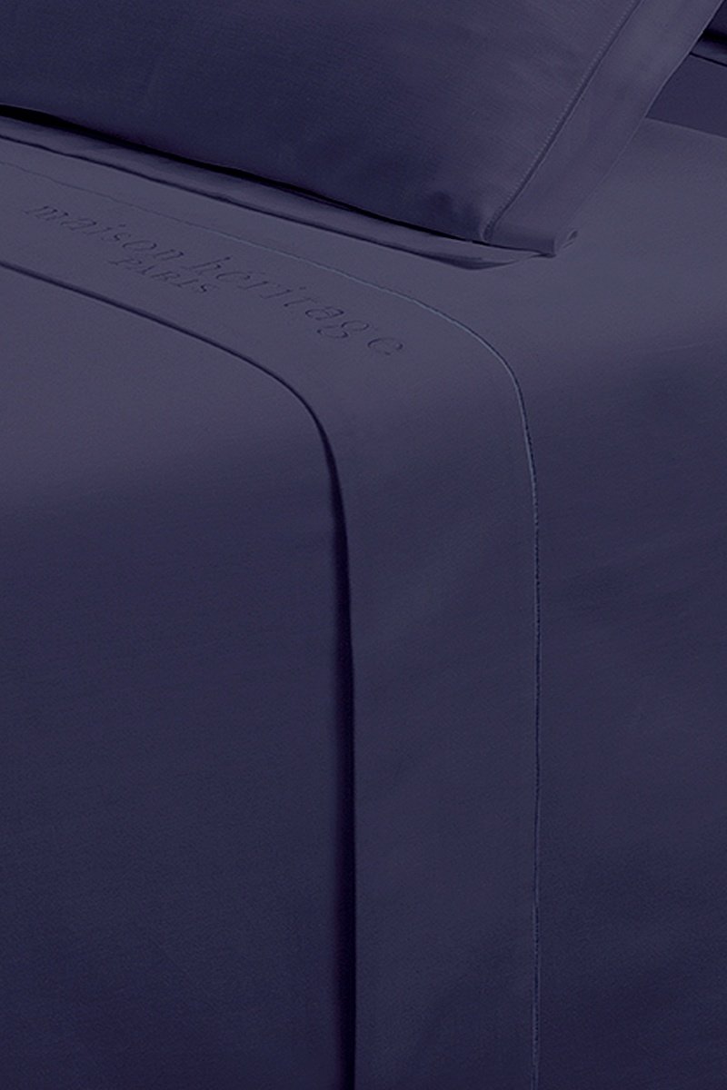 Drap plat en satin de coton 80 fils/cm² Uni - Bleu marine