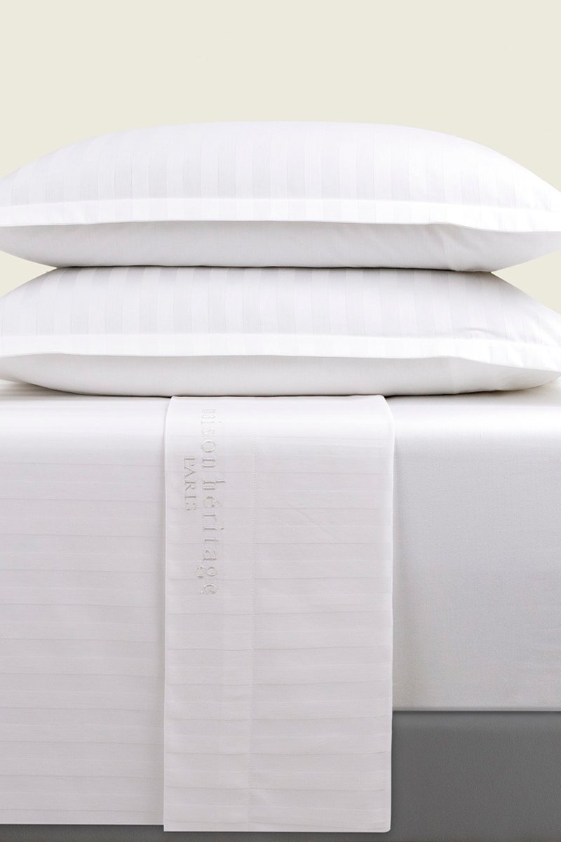 Parure de draps en satin de coton 80 fils/cm² Jacquard - Blanc
