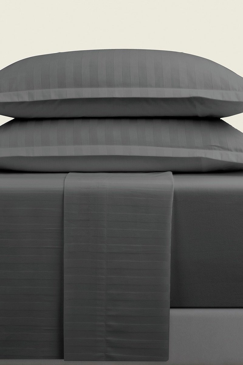 Parure de draps en satin de coton 80 fils/cm² Dobby - Gris foncé