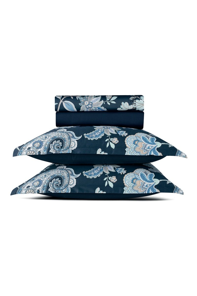 Parure de draps en satin de coton 80 fils/cm² Kashmir - Bleu foncé