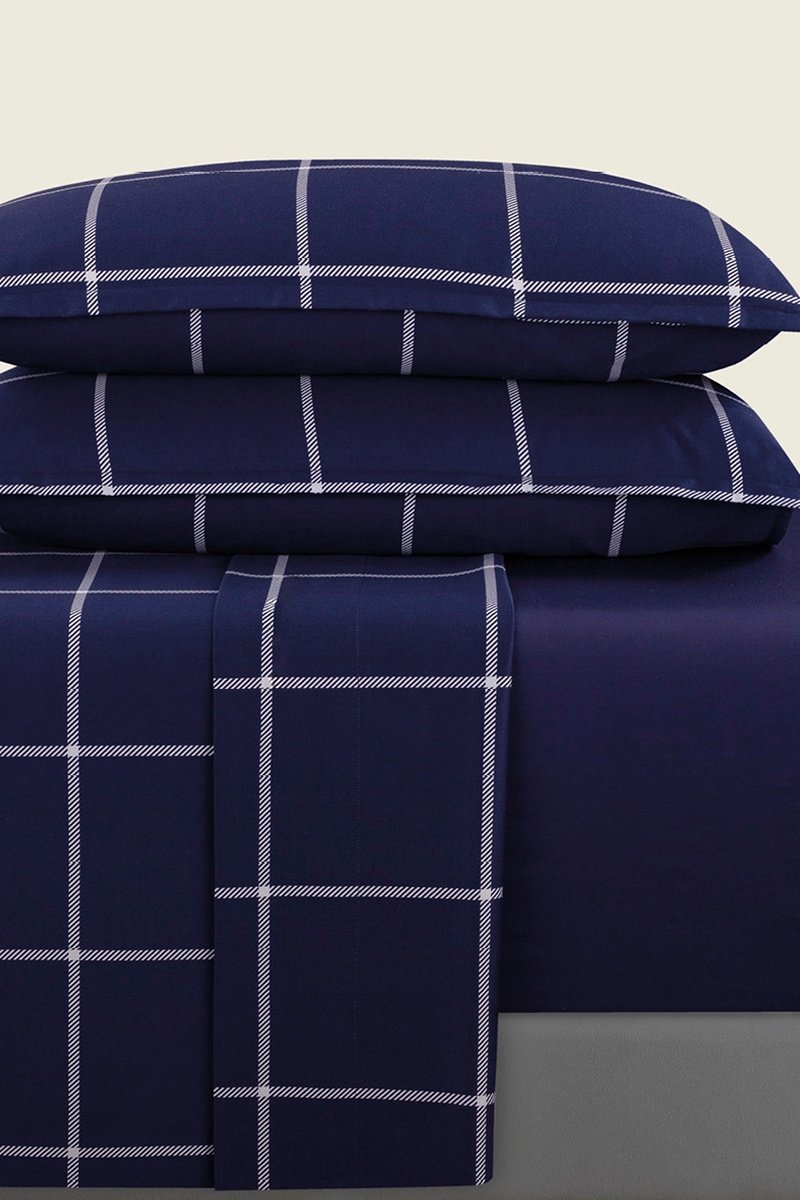 Parure de draps en satin de coton 80 fils/cm² Amélia - Bleu foncé