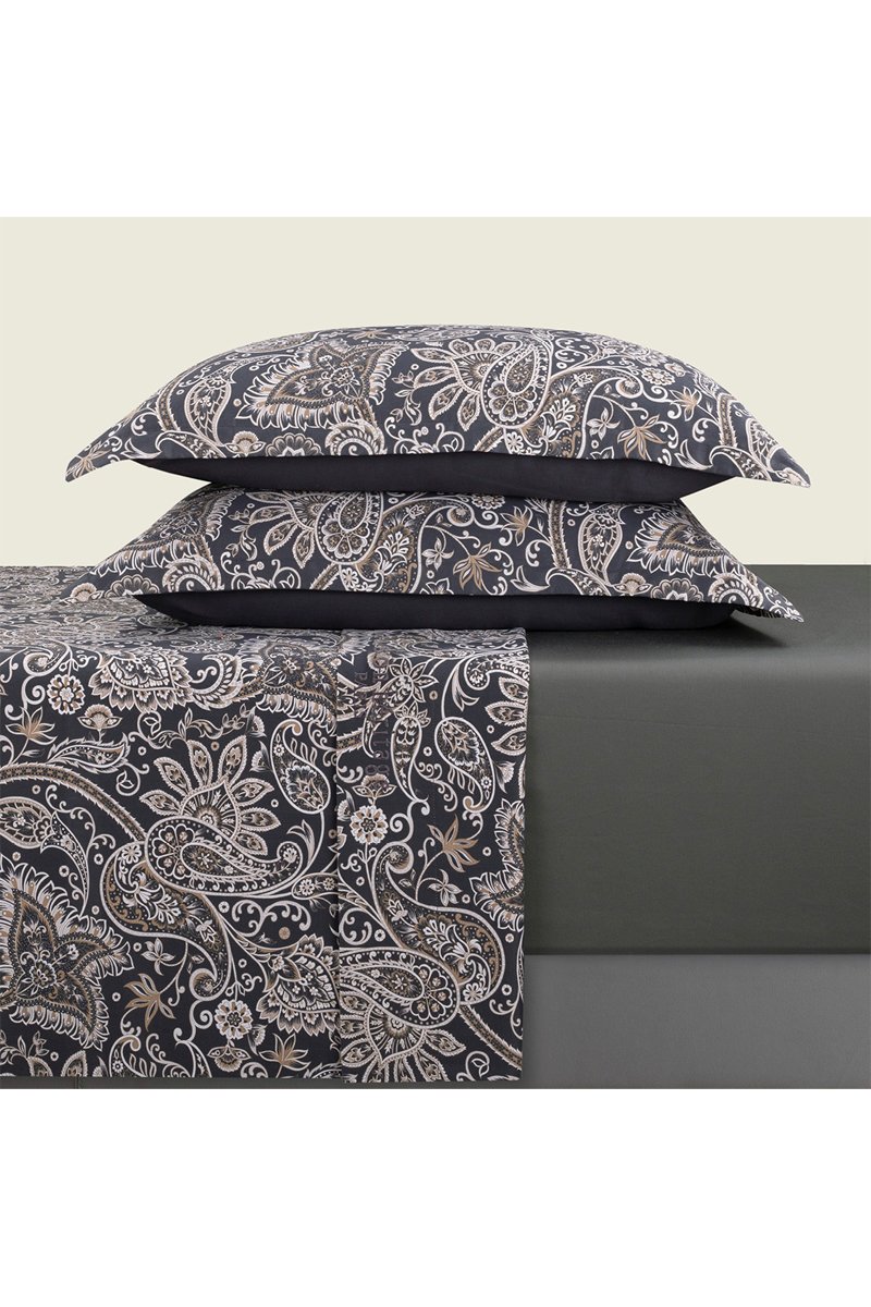 Parure de draps en satin de coton 80 fils/cm² Indienne - Gris foncé et taupe