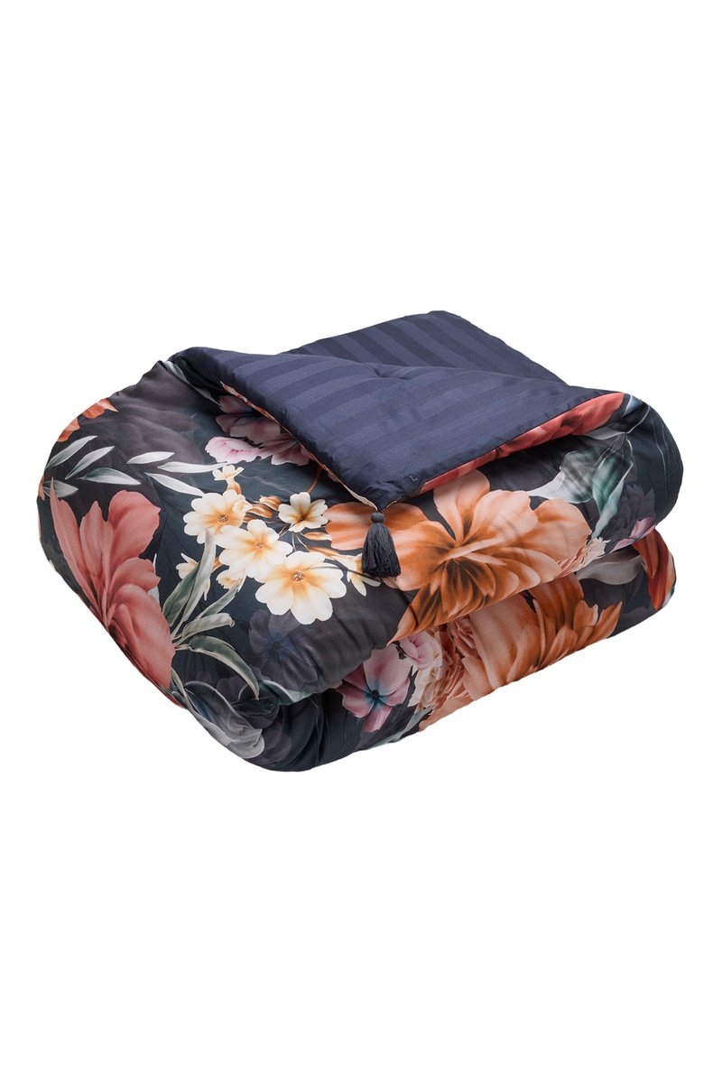 Edredon en satin de coton 80 fils/cm² Fleur de miel - Bleu marine et beige