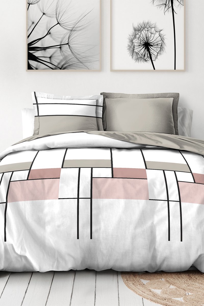 Parure de couette en percale de coton 80 fils/cm² L'intrigante - Blanc et rose