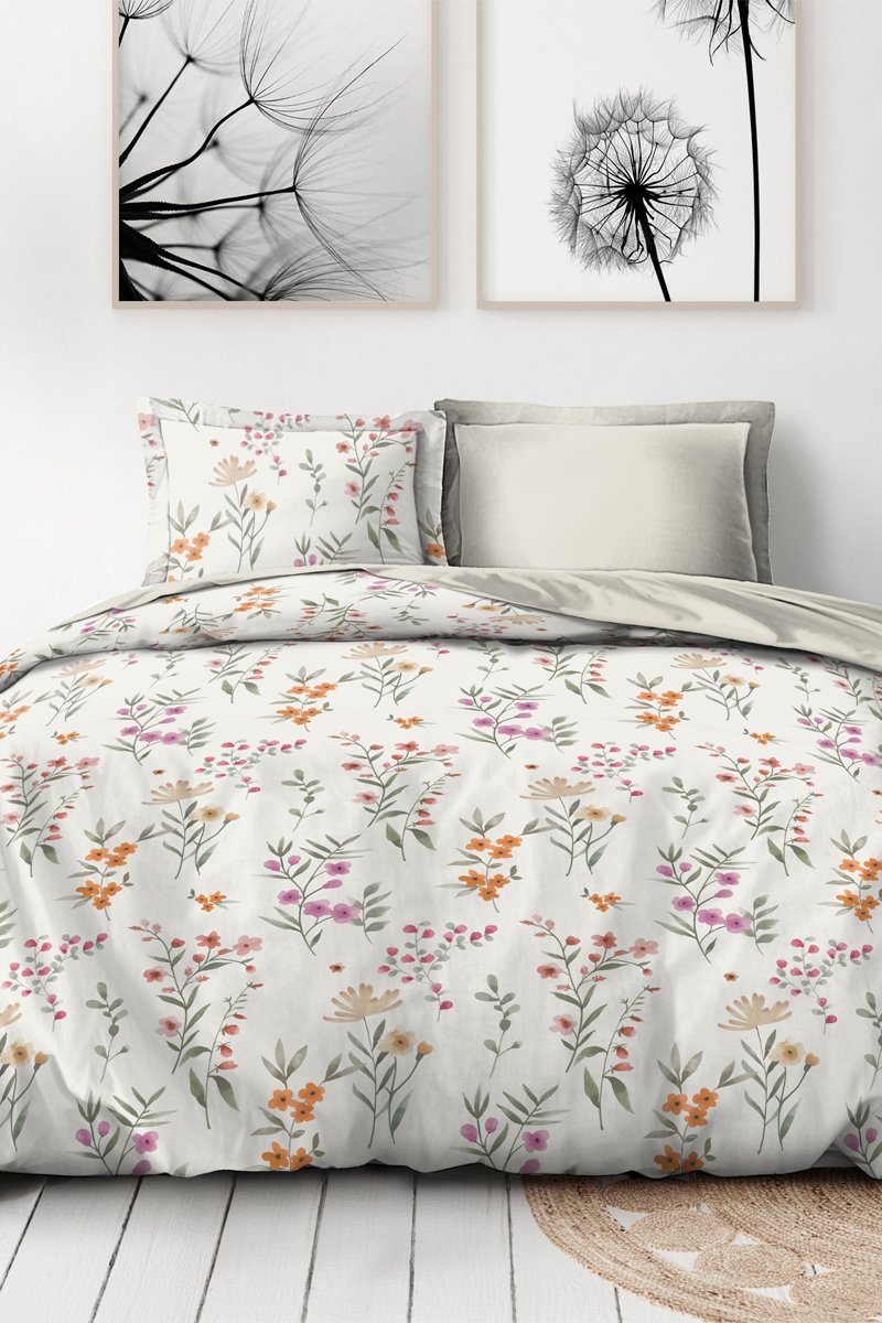 Parure de couette en percale de coton comprenant :