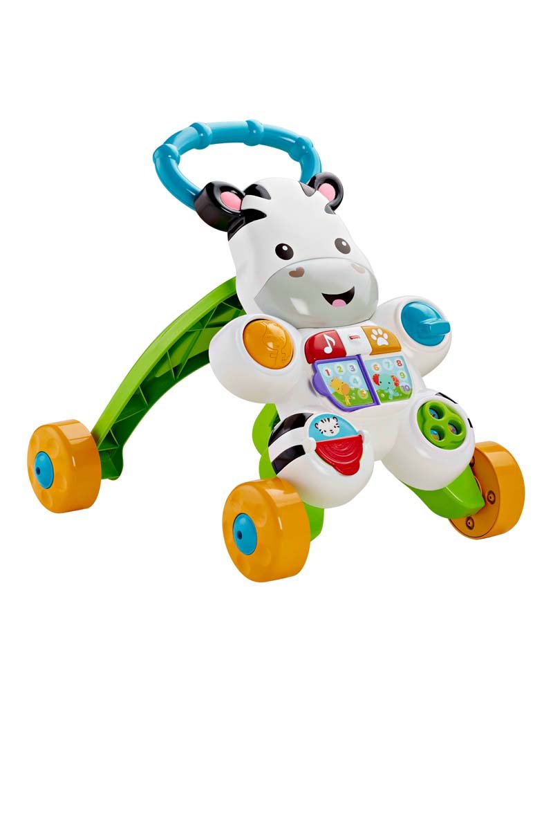 Ce zèbre comprend des activités manuelles très amusantes pour jouer assis. Bébé peut tourner la page du livre ou appuyer sur les boutons lumineux pour découvrir l'alphabet et les chiffres au travers de chansons et de phrases avec ses nouveaux amis ! Et quand bébé apprend à marcher, la poignée facile à saisir et la base à 4 roues du produit l'aident à stabiliser ses premiers pas. « Continue ! ».