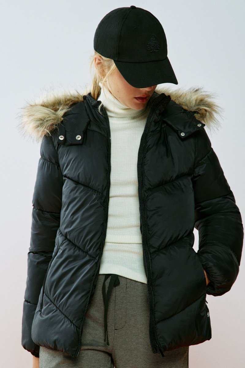 Doudoune à capuche avec fourrure synthétique.