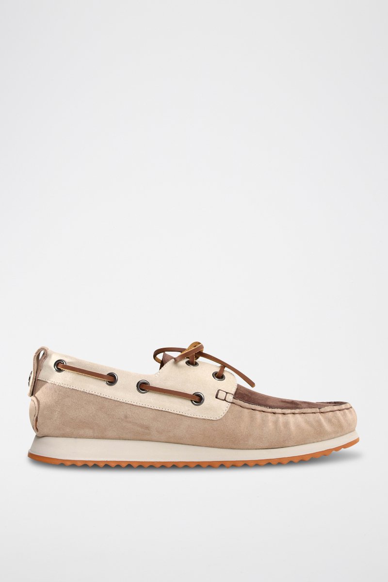 Chaussures bateau en nubuck - Blanc, beige et marron