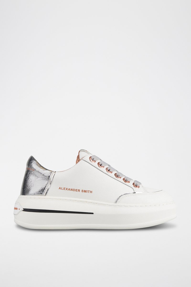 Baskets plateformes en cuir de taureau Lancaster - Blanc, marron et gris