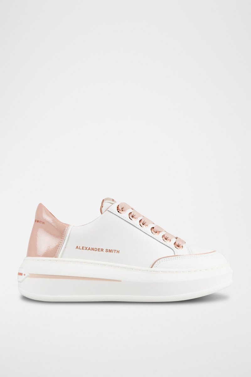 Baskets plateformes en cuir de taureau Lancaster - Blanc et rose