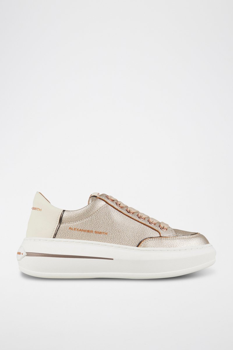 Baskets plateformes en cuir - Marron et doré