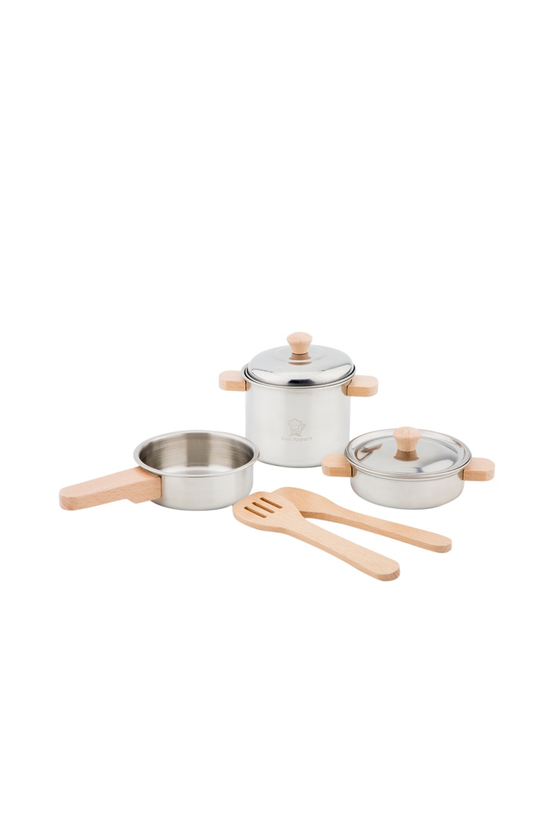 Batterie de cuisine en métal et en bois - Dès 2 ans