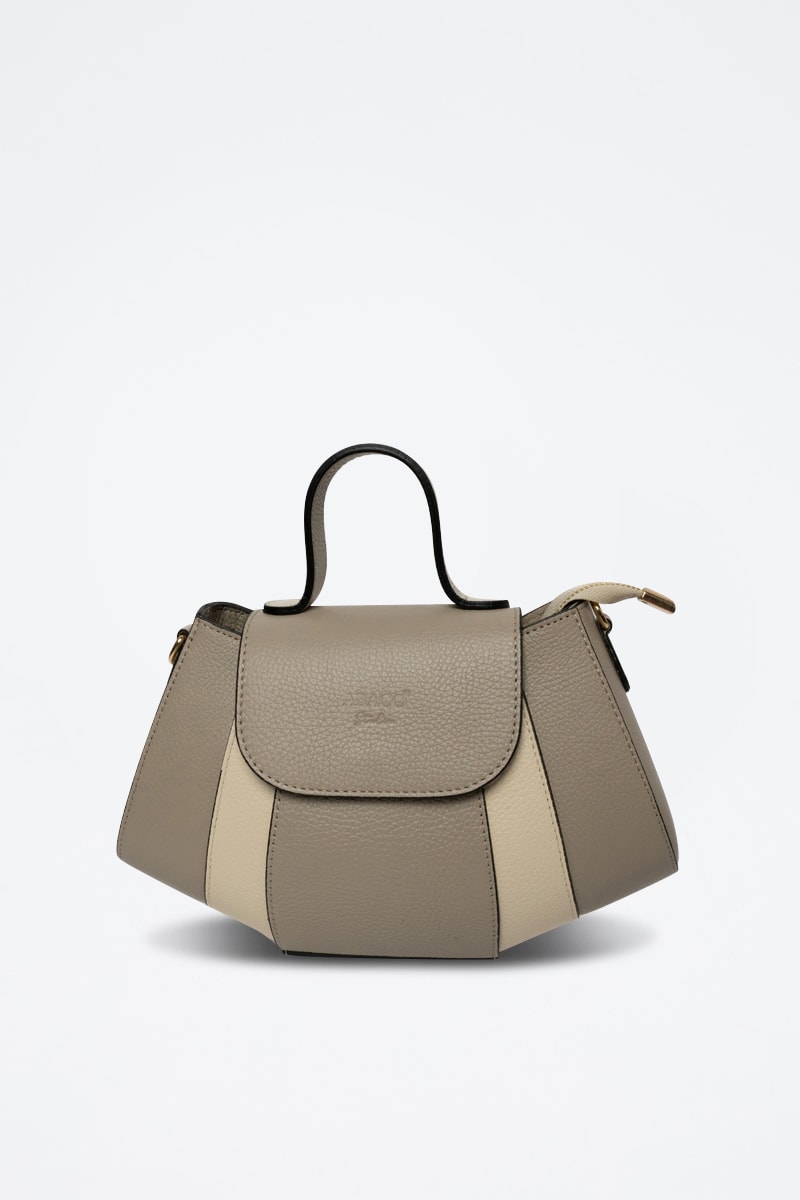 Sac bandoulière en cuir Lara - Taupe et blanc