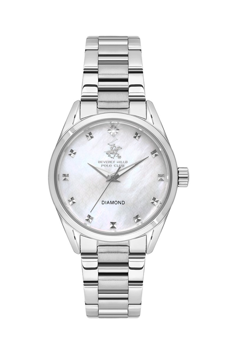 Montre à quartz en métal, plaqué ion argent, diamant et céramique