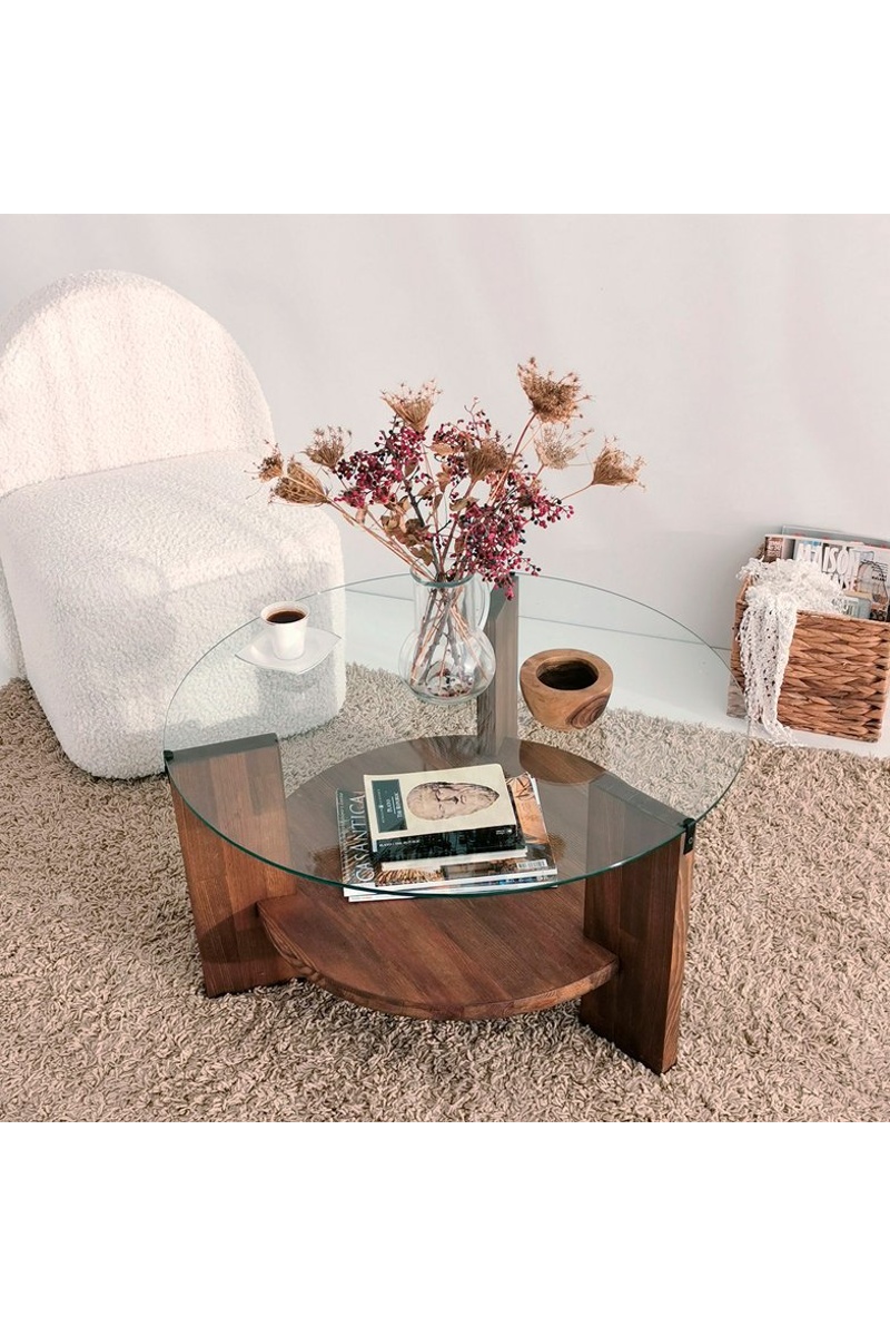 Table basse Mahal - Plateau en verre trempé et structure en bois - 75 x 40 x 75 cm