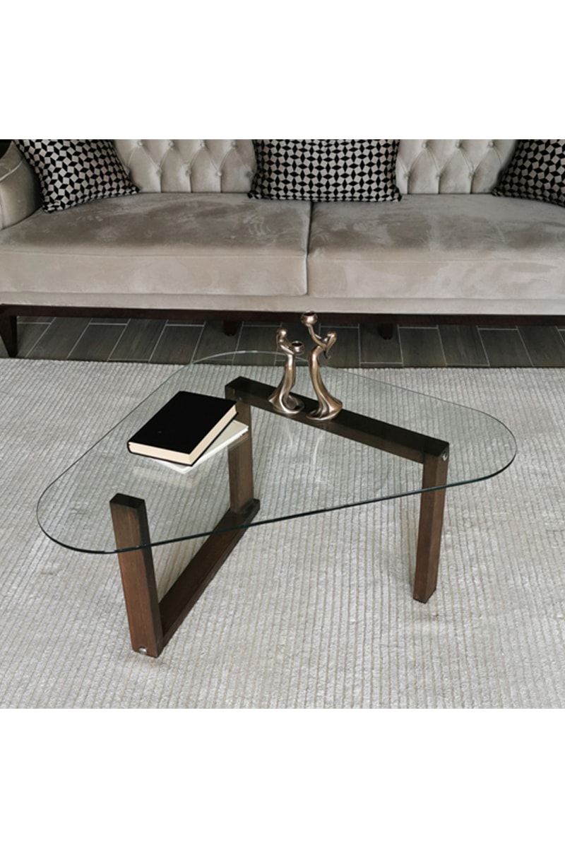 Table basse Cam Orta Sehpa S302 - Structure en bois - Plateau en verre trempé - 96 x 41 x 81 cm
