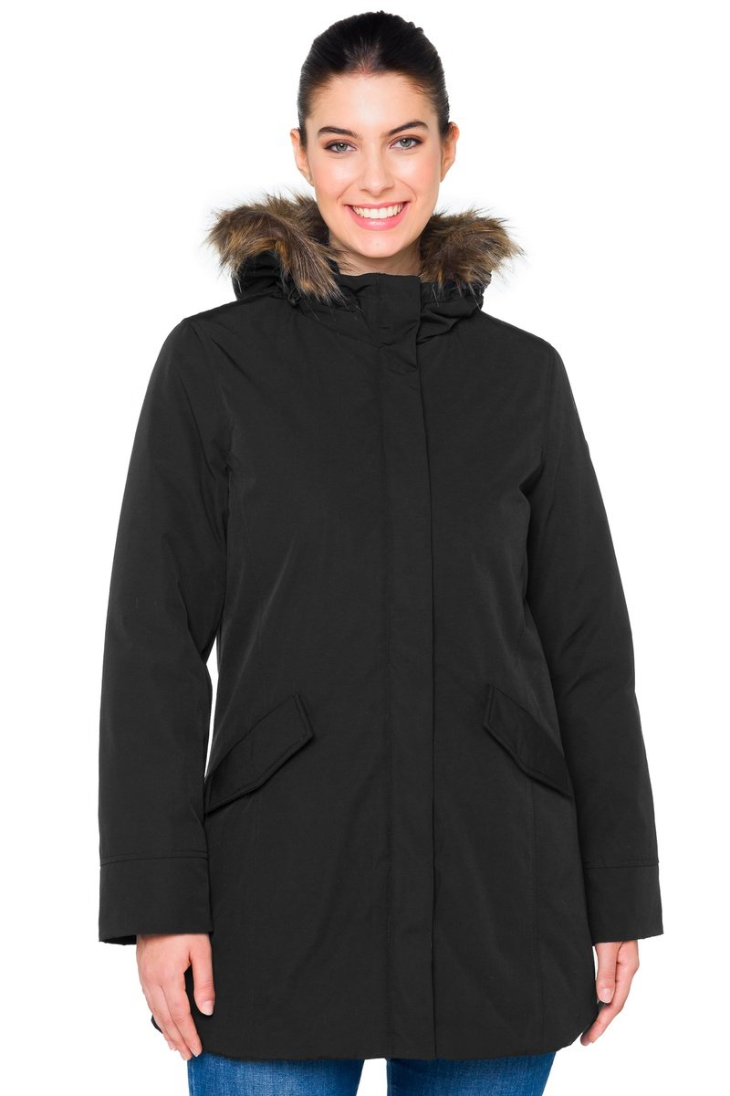 Parka à capuche en fourrure à manches longues.
