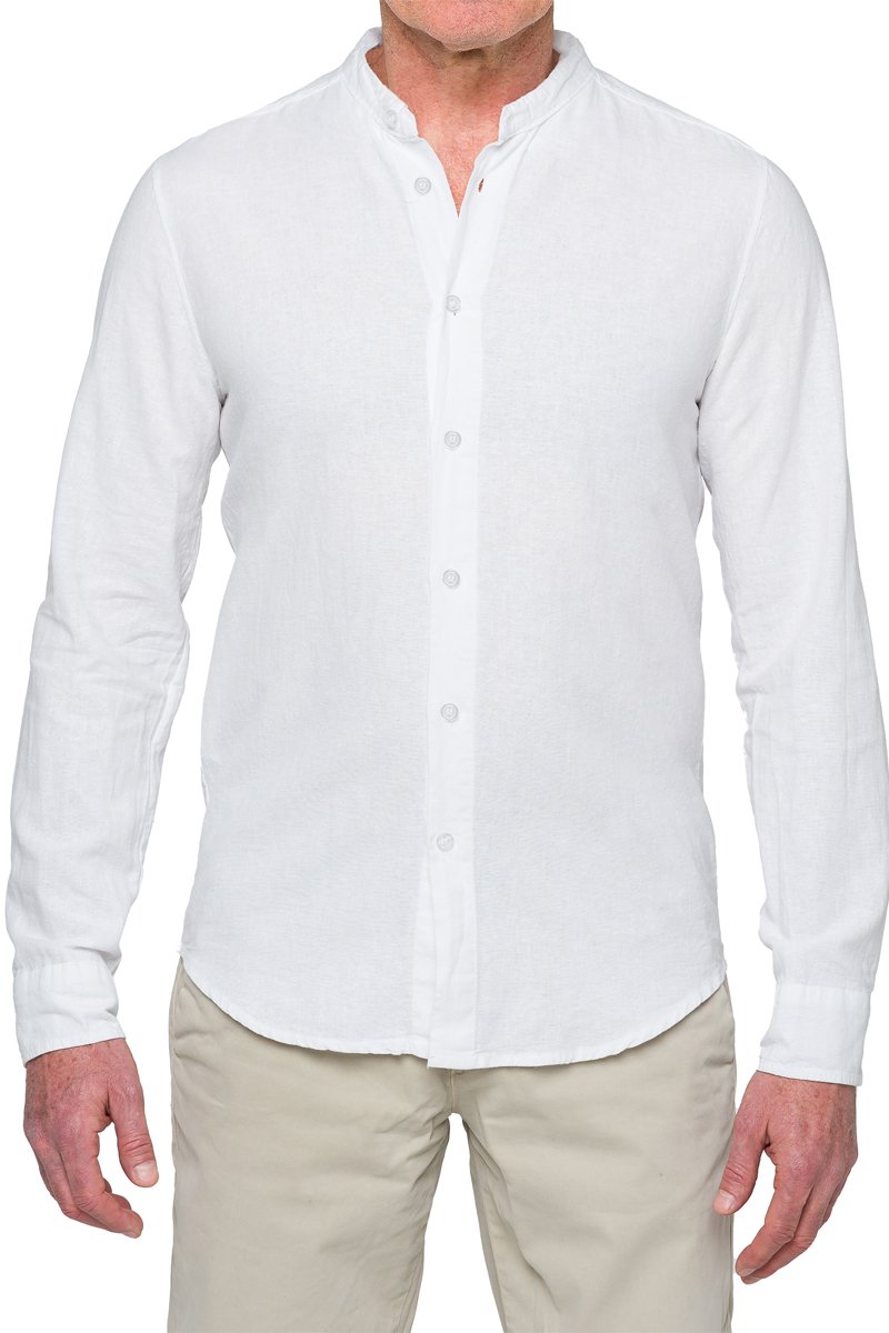 Chemise regular en lin mélangé à manches longues boutonnées.