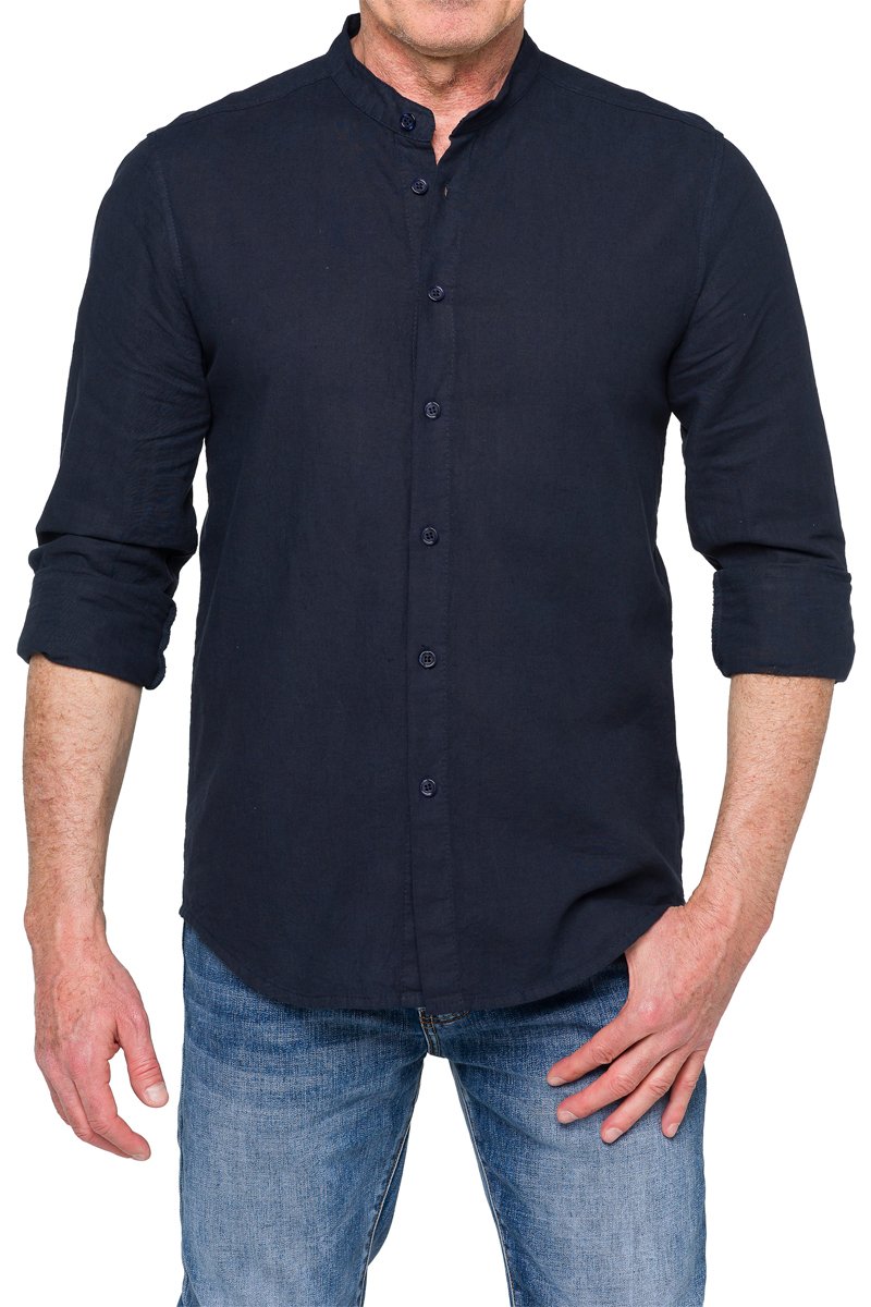 Chemise regular en lin mélangé à manches longues boutonnées.
