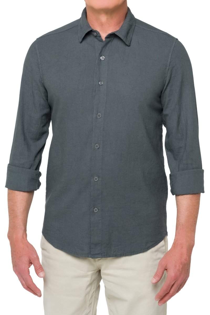 Chemise regular en lin mélangé à manches longues boutonnées.