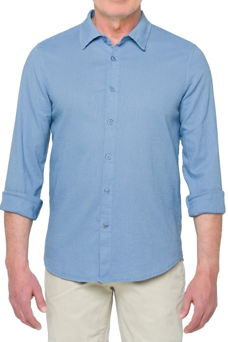 Chemise regular en lin mélangé à manches longues boutonnées.
