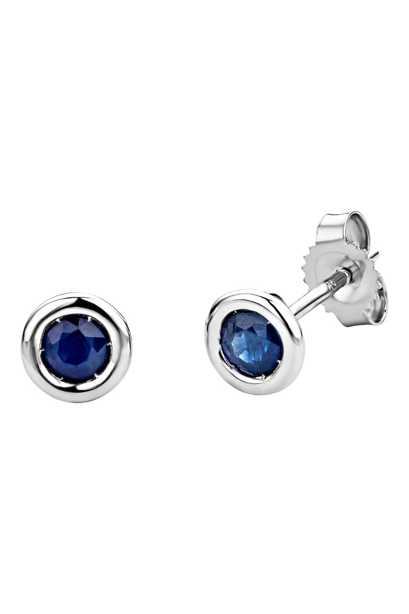 Puces en or blanc serties d'un saphir.