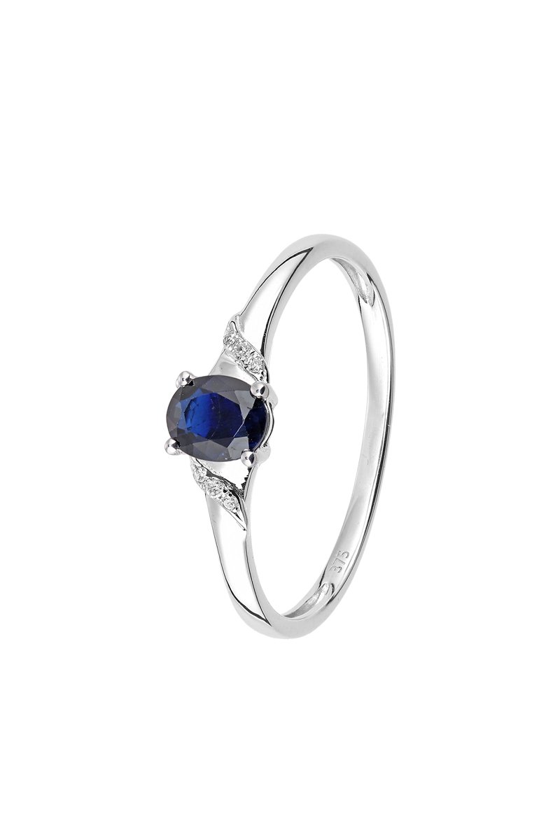Matière : or blanc 375/1000, saphir 0,48 carat/1 et diamants 0,02 carat/6