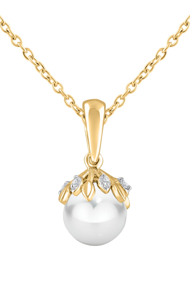 Collier - Or jaune, diamants et perle de culture d'eau douce