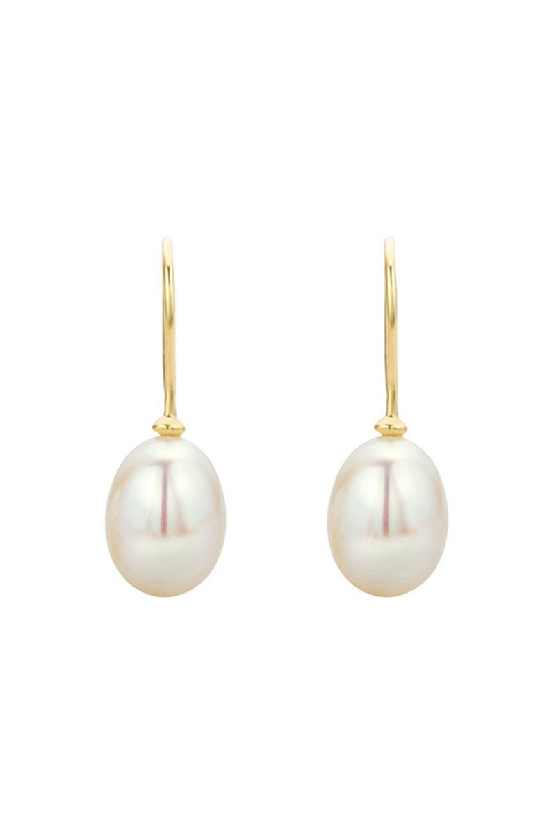 Boucles d'oreilles pendantes en or jaune serties d'une perle de culture.