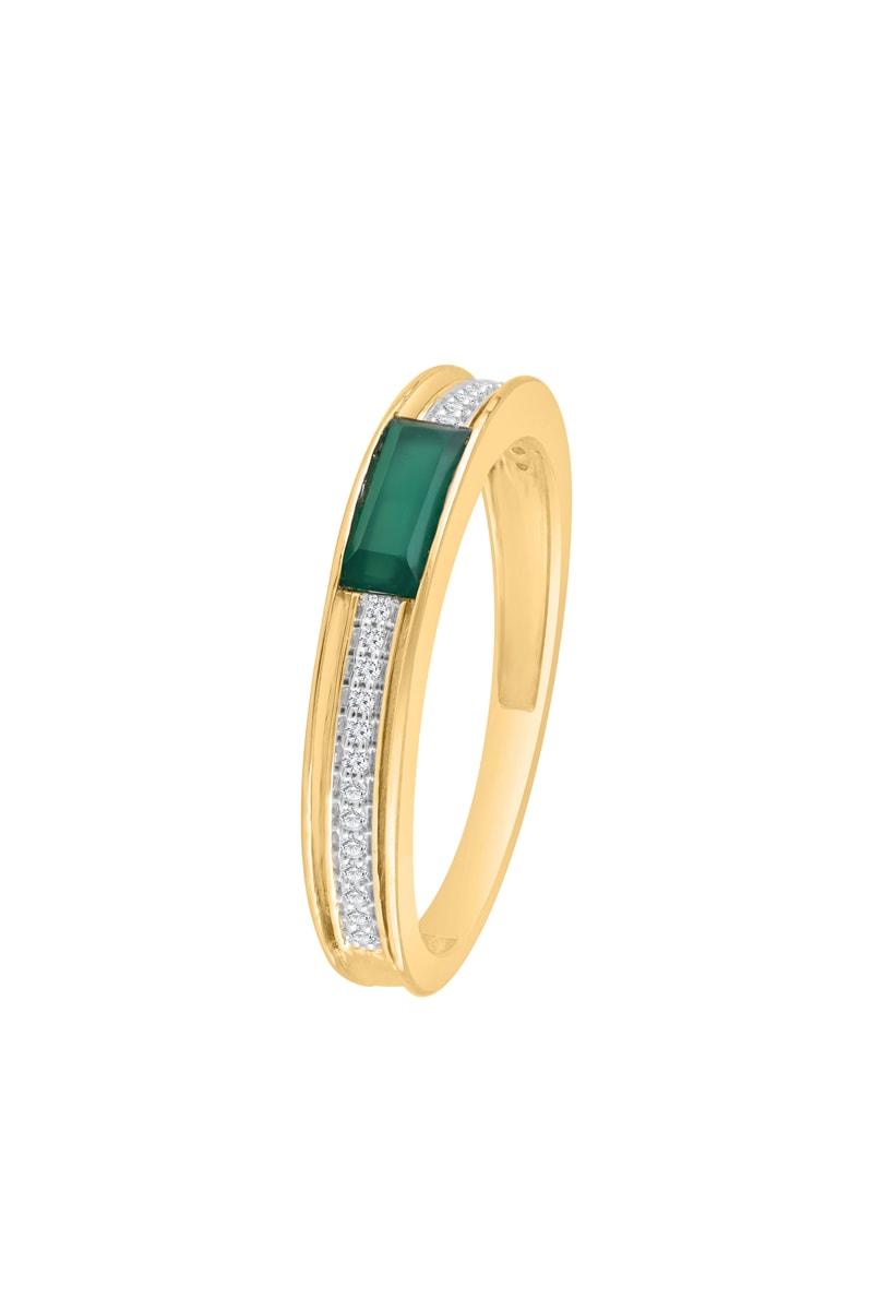 Bague en or jaune sertie d'un onyx et de 27 diamants.