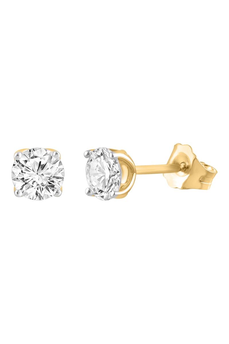 Puces en or jaune serties d'un diamant.