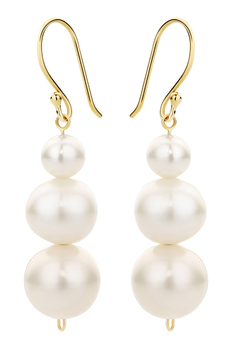 Boucles d'oreilles pendantes en or jaune serties de 3 perles de culture d'eau douce.