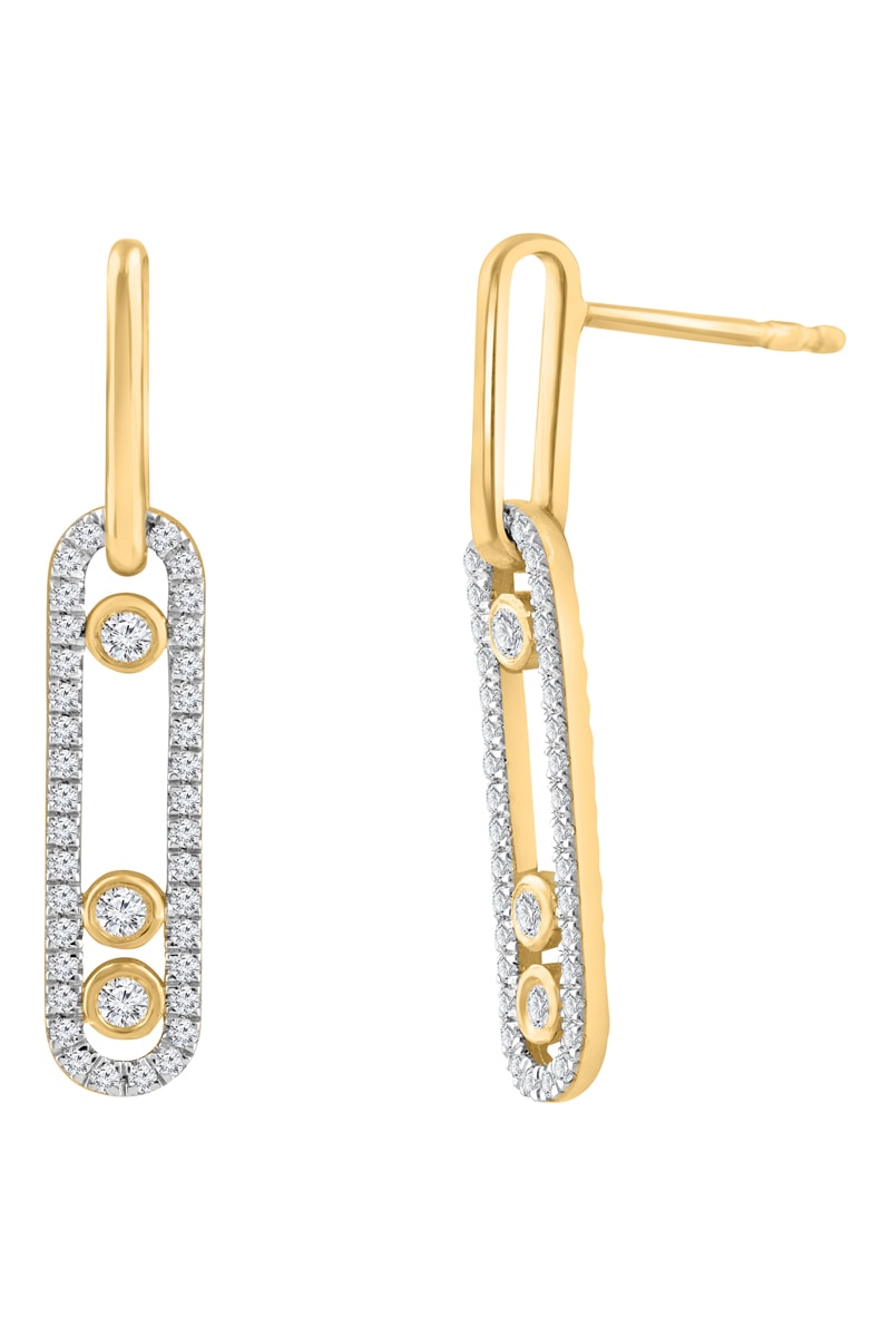 Boucles d'oreilles pendantes en or jaune serties de 39 diamants.