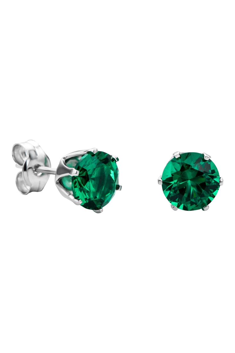 Puces en or blanc serties d'une émeraude de synthèse.
