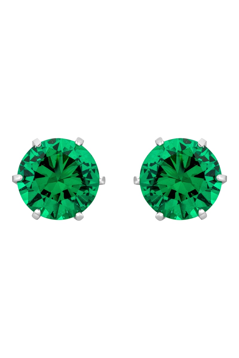 Puces en or blanc serties d'une émeraude de synthèse.
