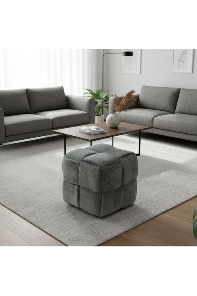 Pouf - Gris foncé - En tissu bouclette